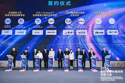 现场,科技创新助力品牌打造合作项目、海藻纤维色织缎纹床品套件开发合作项目等一批项目签约,多方将携手加快促进先进纤维创新成果的切实落地和产业转化。同时,来自纤维应用领域的专家,以“前沿纺织材料创新动向”为主题,围绕先进材料的发展情况与应用趋势展开前瞻性讨论,为加快培育纺织行业新质生产力明晰方向。