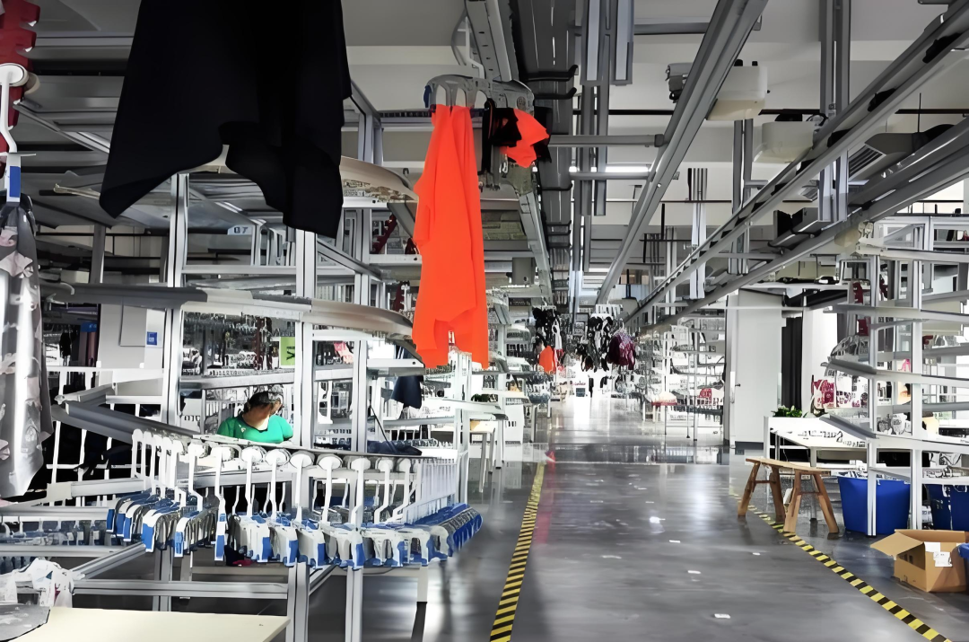 江西南昌华兴针织实业有限公司(以下简称“华兴针织”)5G智慧工厂,生产数字大屏正按不同的模组实时呈现各生产工序的数据画面。全自动吊挂系统、智能运输分拣存储系统等各种数字化生产设备高速运转,赶制着一批批行销欧美的针织服装。工人们有序地忙碌着——自动传送带将裁好的布料精准运送到每一道工序的工位旁,工人们将布料取下,随即进行再次加工。
