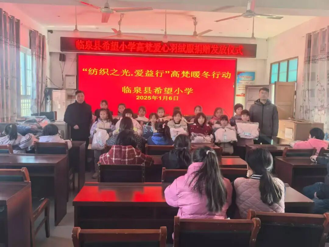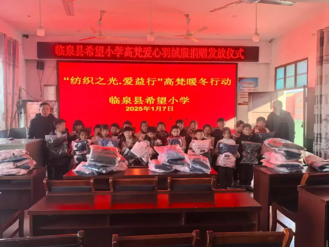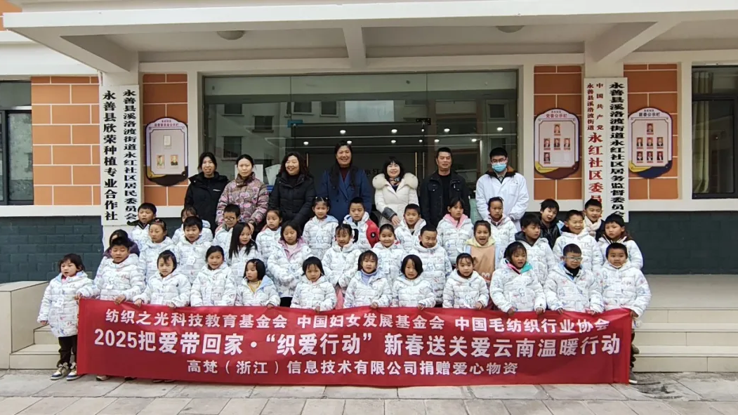 此次2025年新春纺织之光・爱益行温暖行动,由纺织之光科技教育基金会与中国毛纺织行业协会携手高梵(浙江)信息技术有限公司共同发起,在春节前夕,将高梵品牌捐赠、满载纺织人爱心的近2万件羽绒服,通过中国妇女发展基金会、中国红十字基金会、中华社会救助基金会、北京世纪慈善基金会、中国古生物化石保护基金会,多个帮扶点和纺织之光志愿者们的协同合作,按照既定方案,迅速送达偏远及欠发达地区的乡村教师、儿童,还有残疾人、重残、一户多残、老残一体等困境群体手中,让他们在新春寒冬中感受到来自纺织服装行业的关爱。