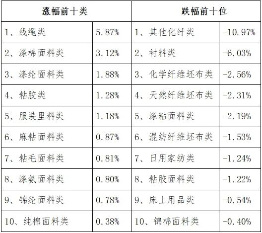 服装面料环比回升