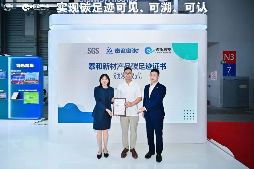 6月5日下午,SGS联合碳衡科技,共同为泰和新材集团股份有限公司(以下简称“泰和新材”)颁发碳中和认证证书。