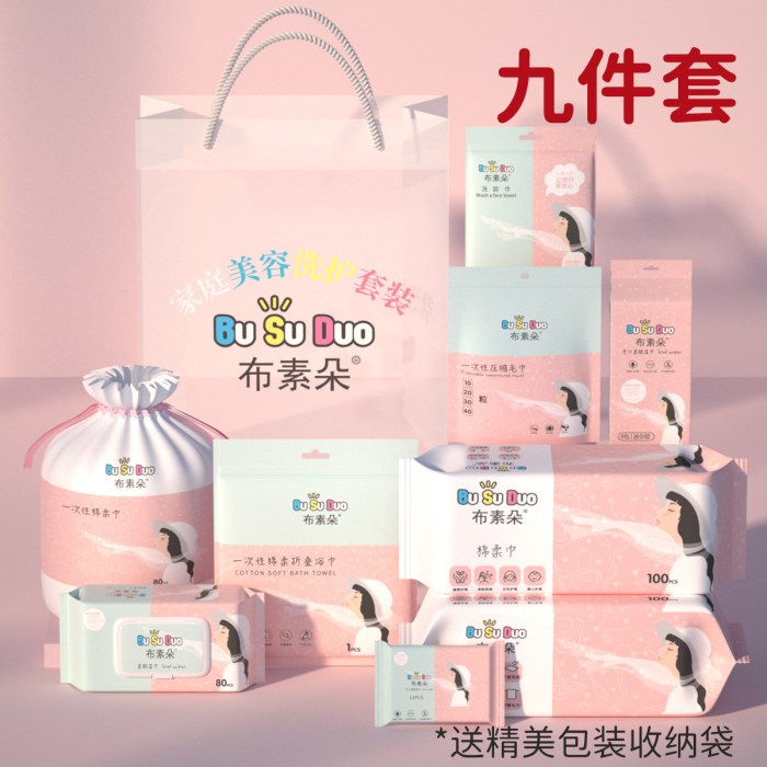 商品名称 一次性旅游洗脸巾套装便捷加厚多功能九件套(全家福款)