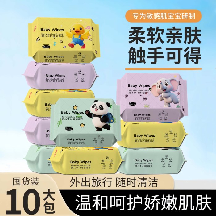 商品名称 卡通便携迷你湿巾婴儿湿巾便捷口袋湿巾卡通混装(20片一包10包1箱)