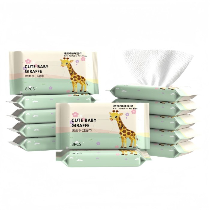 商品名称 便携迷你湿巾婴儿湿巾便捷口袋湿巾长颈鹿手口湿巾(8片1包)