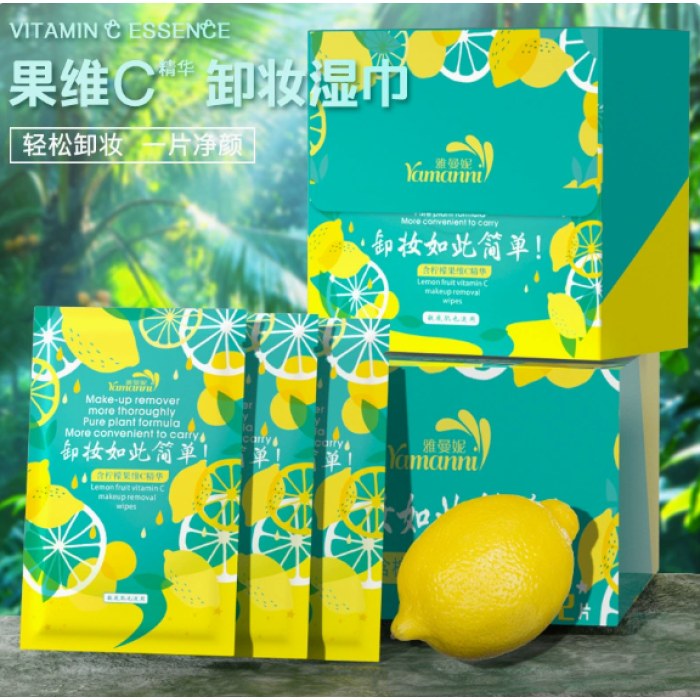 商品名称 盒装卸妆湿巾洁面清洁棉巾柠檬维C精华彩妆美妆工具一次性湿纸巾雅曼妮维C 32片装