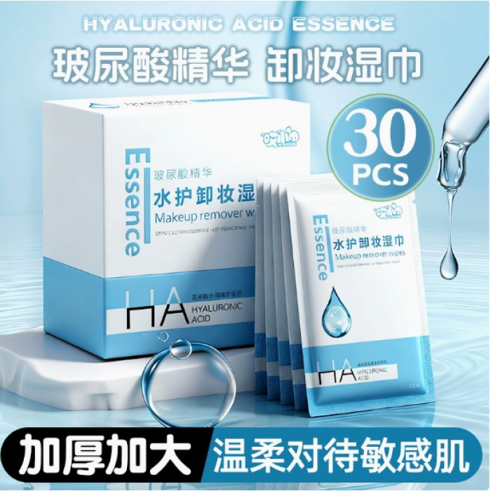 商品名称 盒装卸妆湿巾洁面清洁棉巾柠檬维C精华彩妆美妆工具一次性湿纸巾玻尿酸加大加厚30片装