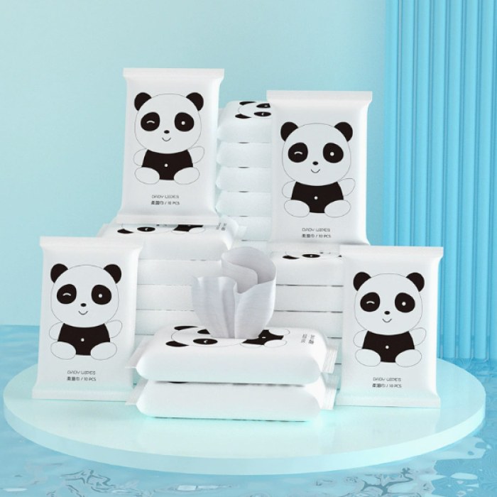 商品名称 10片装湿巾婴幼儿手口清洁便携湿纸巾抽取式十片一次性湿巾母婴用熊猫1包