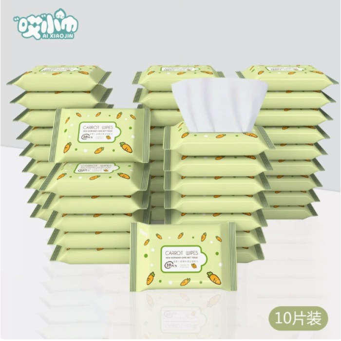 10片装湿巾婴儿抽取式便携小包湿纸巾十片一次性清洁湿巾母婴礼品胡萝卜