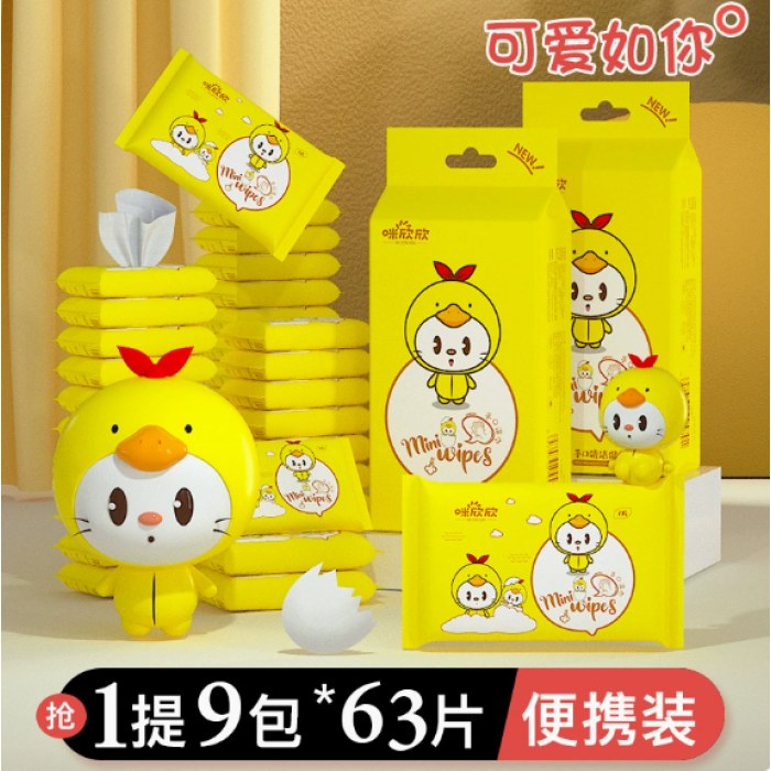超迷你湿巾提装便携小包手口湿巾抽取式学生清洁成人卫生湿巾纸巾黄小鸭1提