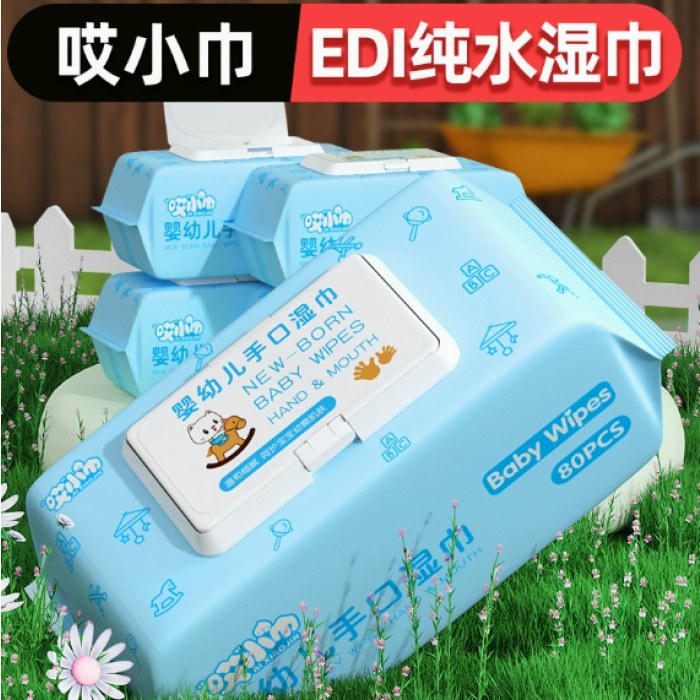 80抽纯水婴儿湿巾带盖手口清洁湿巾大包擦屁湿纸巾宝宝哎小巾小木马80抽