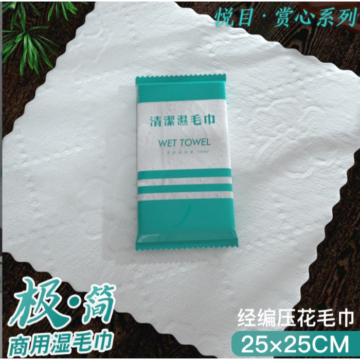 25CM湿毛巾餐饮酒店用品宾馆饭店一次性消毒毛巾手口湿巾可印logo