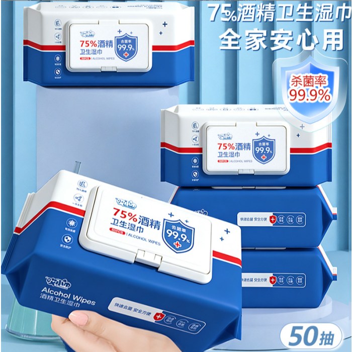 商品名称 75酒精卫生湿巾杀菌酒精棉片大包50片装家用一次性清洁湿纸巾批发
